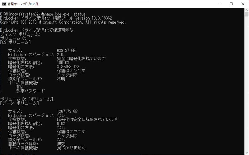 Windows 10 で、BitLocker を使ってディスクを暗号化してみた