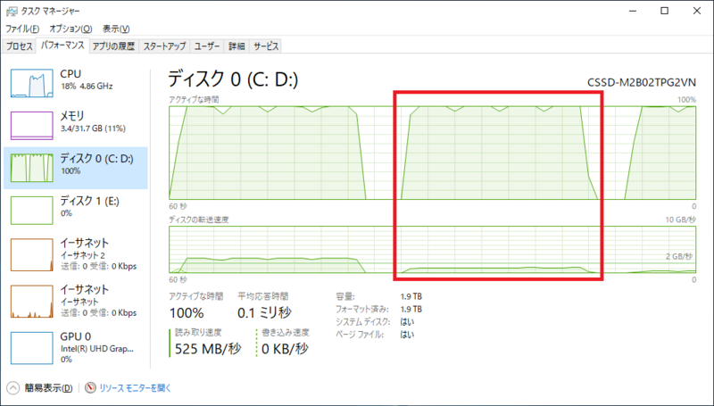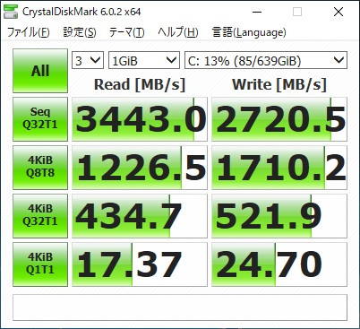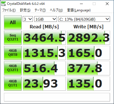 参考まで、BitLockerによる暗号化の前後のパフォーマンスを測定しました。